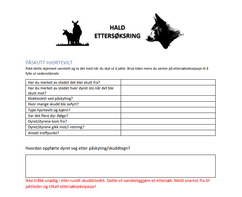 hjort og rådyr ha tilgang på godkjent ettersøkshund.